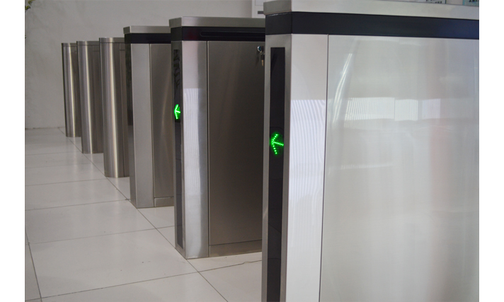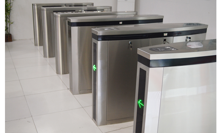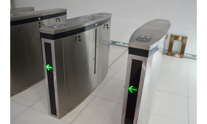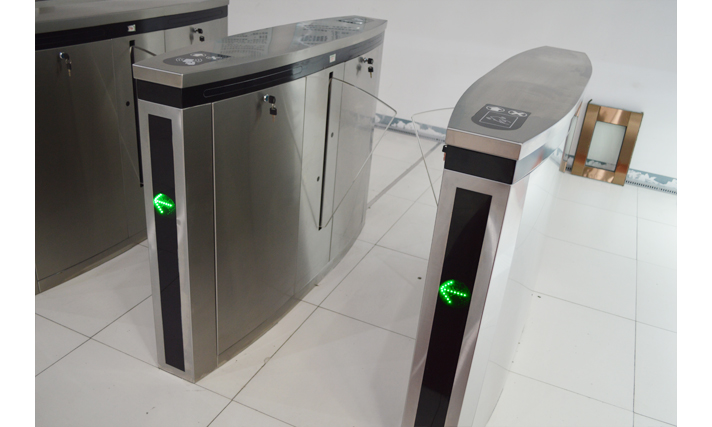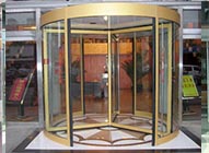 两翼旋转门的停门位置有两个,一个是门体与入口平面平行,中间的自动平移门或手动平开门可直接使用