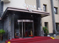 项目名称:河北沧州迎宾馆 门 型:两翼豪华自动旋转门 玫瑰金